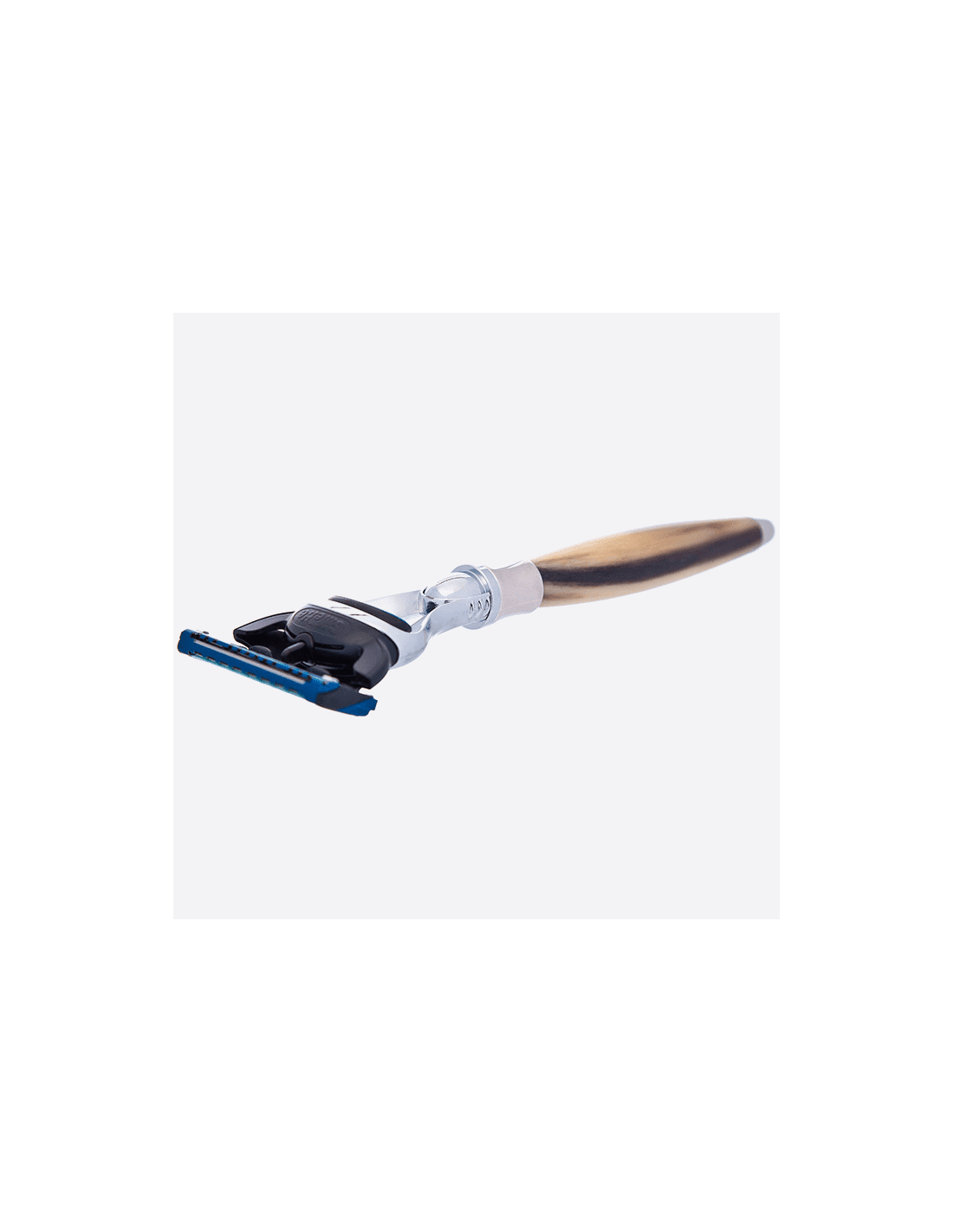 Klassische Linie für dieses Modell aus Naturhorn, kombiniert mit Messing in Palladium-Finish. Erhältlich mit 3 Kopftypen: Mach3 und Gillette Fusion und traditionellem Kopf. Hergestellt und montiert in Frankreich. Passende Rasierpinsel sind ebenfalls erhältlich.