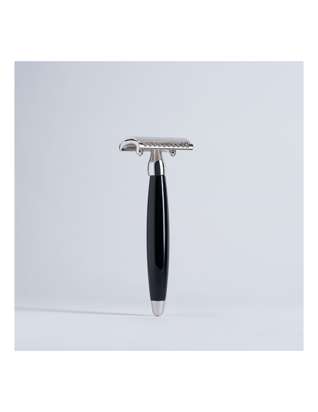 Traditionelles Rasierhobel in verchromter Ausführung, schwarz lackiert. Geschlossener Kamm.