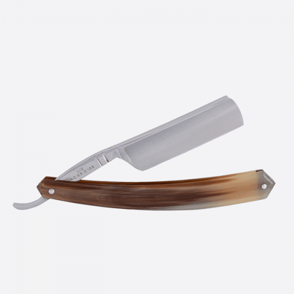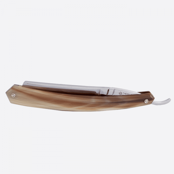 Sehr ergonomisches "Säbel"-Rasiermesser aus Kohlenstoffstahl C135, aus der besten handwerklichen Tradition der Thiers-Issard-Werkstätten in Frankreich. Griff aus echtem Horn, elegant und handlich. Die sehr dünne und ausgehöhlte Klinge gewährleistet eine perfekte und gleichzeitig sanfte Rasur. Die rutschfeste Kerbe auf der Unterseite der Seide sorgt für mehr Sicherheit. Dieses Rasiermesser wird in seinem eleganten schwarzen Lederetui geliefert.