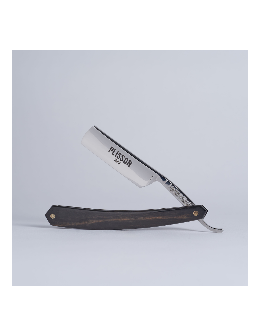 Dieser Rasierer, auch "Säbel" genannt, hat eine Klinge aus C135-Kohlenstoffstahl. Handgefertigt in Zusammenarbeit mit den Thiers-Issard-Werkstätten in Frankreich. Der Griff besteht aus echtem Ebenholz, einem kostbaren Holz, das für seine dunkle Farbe bekannt ist. Die Klinge ist dünn und hohl, für eine perfekte und weiche Rasur. Die rutschfeste Kerbe an der Unterseite des Zapfens garantiert Ihnen mehr Sicherheit. Der Rasiermesser wird in einem eleganten cognacfarbenen Wildlederetui geliefert.