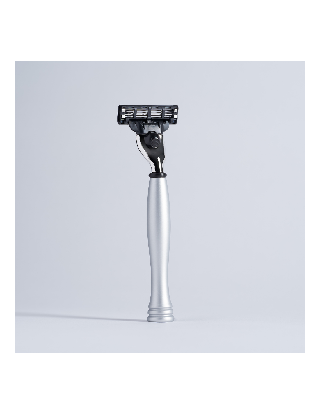 Ein schönes Set aus dem Essentiel-Sortiment, ideal für den Einstieg in die traditionelle Rasur. Das Set besteht aus einem herrlichen Rasierpinsel in Größe 12, der am häufigsten verwendeten Größe, mit dem klassischen Acetatgriff und einem Besatz aus reinem russischen Graudachs, fest und belebend für die Haut. Dazu gibt es den passenden Rasierapparat mit einem präzisen und effizienten Gillette Mach3 Kopf. Das Ganze wird durch den passenden schwarzen Stahl-Caddy ergänzt, in dem Sie Ihr Rasierzubehör perfekt aufbewahren können.