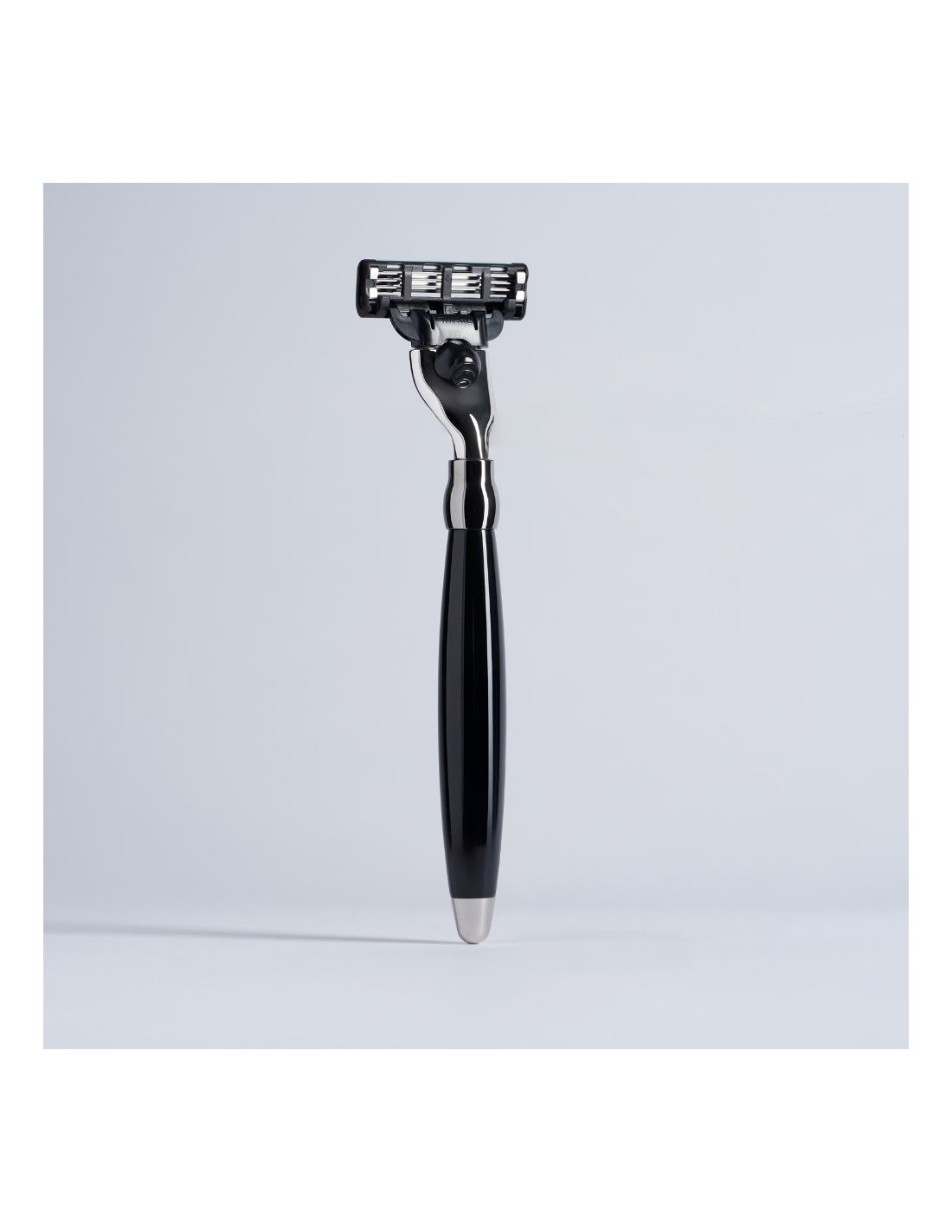 Einem Mach3-Rasierer aus massivem Messing mit lackiertem Griff und hochwertigem Chrom-Finish. Kompatibel mit Gillette Mach3-Klingen, sorgt er für eine präzise und angenehme Rasur.