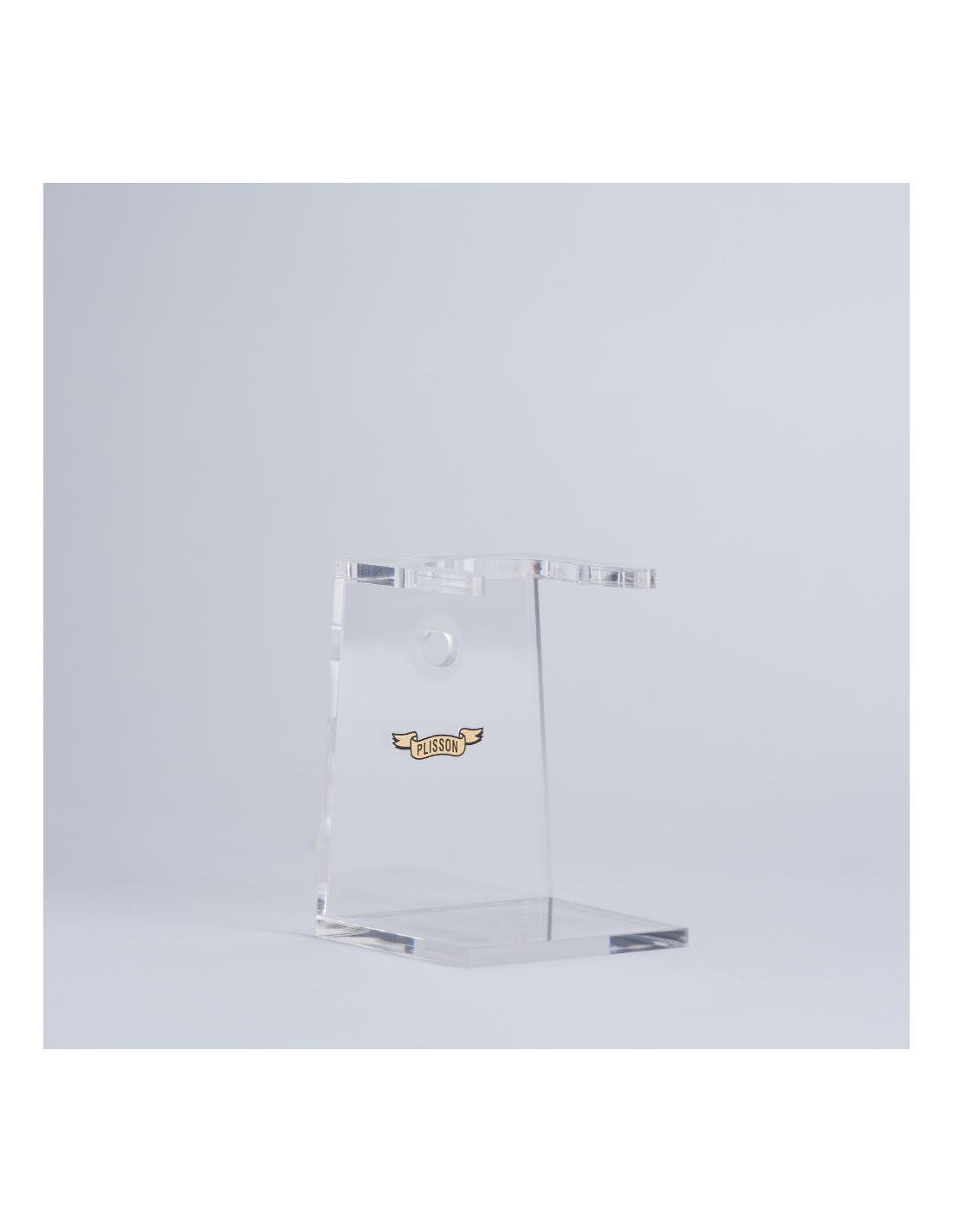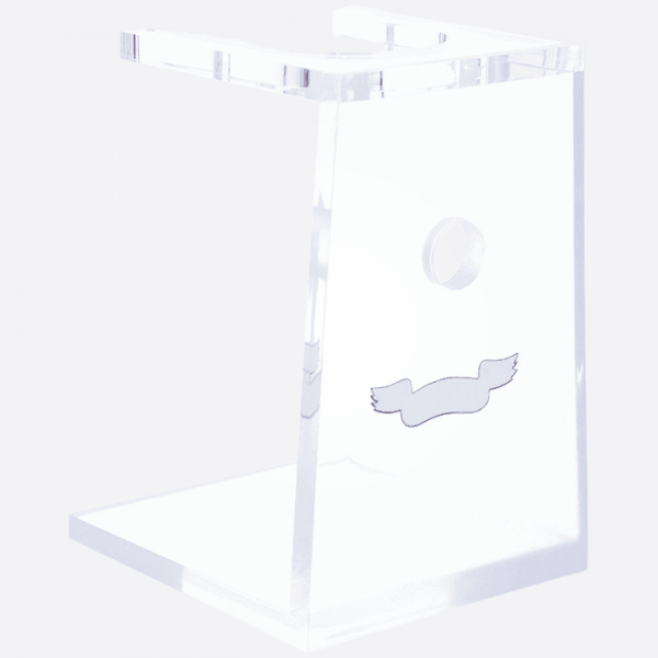 Großer Ständer für Rasierpinsel aus kristallklarem Plexiglas, ideal für Pinsel von Größe 16 bis Größe 20. Kann aufrecht aufgestellt oder an der Wand befestigt werden. Handgefertigt in Frankreich.