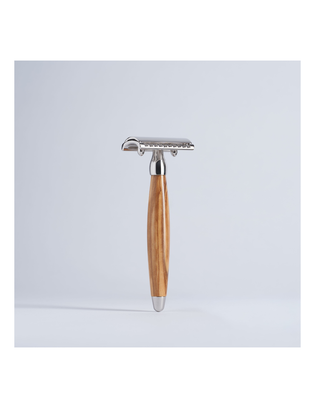 Elegant safety razor in a varnished olive wood and solid brass with a Palladium finish. Thanks to the natural material each model is different and unique. The handle is well balanced, ensuring high precision of gestures during shaving. To meet your preferences this beautiful razor is available with 2 different heads: