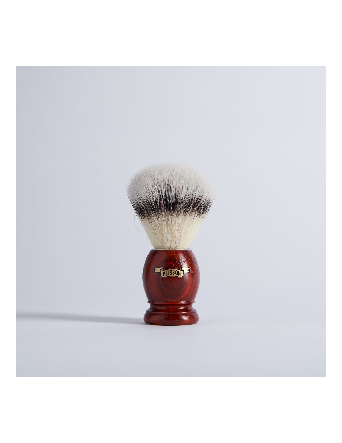 Magnificent synthetic fibre "High Mountain White" shaving brush with Padouk handle. Its original Plisson design provides an excellent grip. The fibre is ideal for sensitive skin and the Padouk wood is varnished for more resistance to humidity.