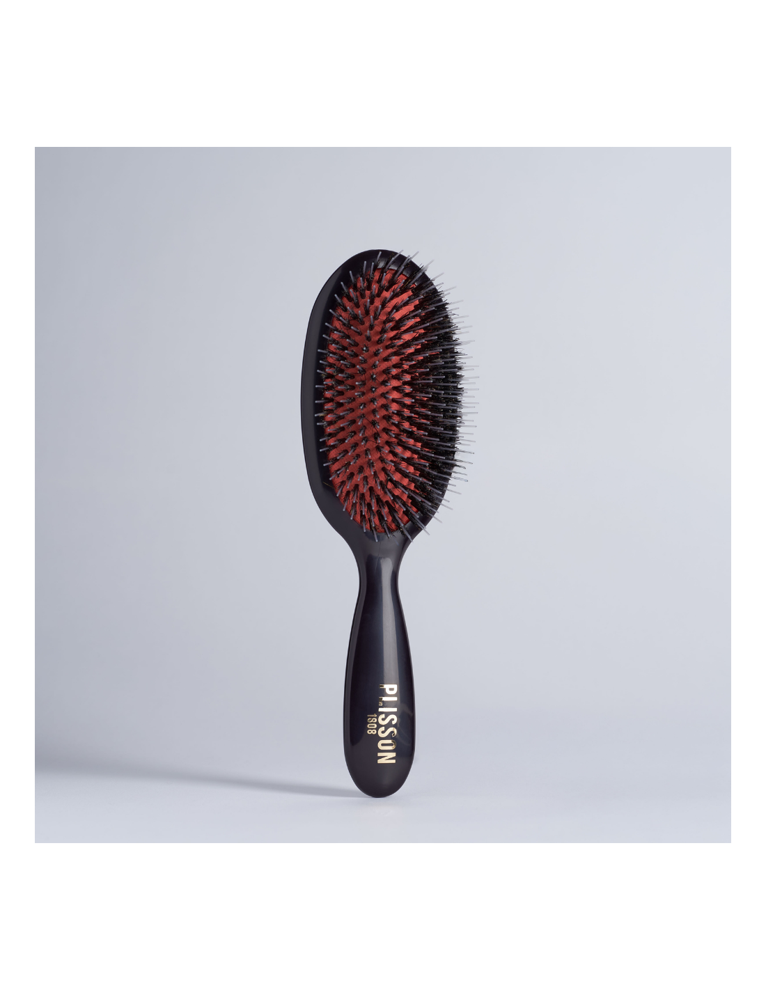 Medium pneumatic hairbrush (21 cm), combining fine, long, soft nylon bristles with real boar bristles, rigorously selected, for perfect detangling and a relaxing scalp massage. These are known for their antistatic qualities and their ability to cleanse the scalp, removing impurities and excess natural hair grease. The bristles and pins are mounted on a latex pad that regulates the pressure exerted on the scalp during brushing. Your hair becomes healthy and shiny again. The handle, made of ABS, is ergonomic and very pleasant to handle. This handy size is ideal for sublimating medium-length hair.
