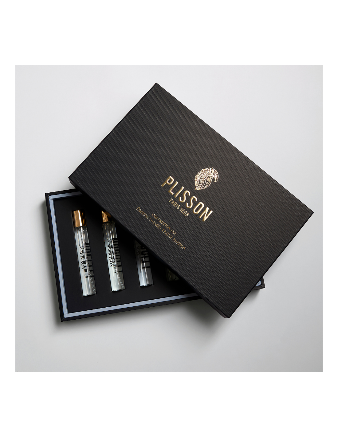 Discover the six perfumes of the 1808 Collection, presented in 15 mL formats. Carefully gathered in a Plisson pouch, for a refined experience.