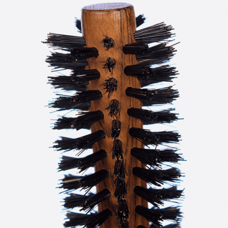 Round hair brush, with wild boar bristles mounted on a wooden frame of European wood. The boar bristles, both flexible and resistant, are known for their absorbent and smoothing properties without an electrostatic effect. While respecting the hair fiber, they pull perfectly the hair from their roots, for a perfect and smooth brushing. The ergonomic handle ensures a comfortable grip and the ease of use. Made entirely in France with 100% natural products. This round hair brush is also available in a larger diameter.