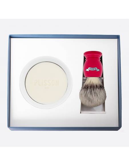 This shaving brush is made of very resistant acetate. Light and with a good grip. This model is proposed in size 12, standard, well adapted for daily use with its adapted plexi-crystal support for a "head down" storage, essential for a good drying, and a Limoges porcelain bowl with its beard soap.