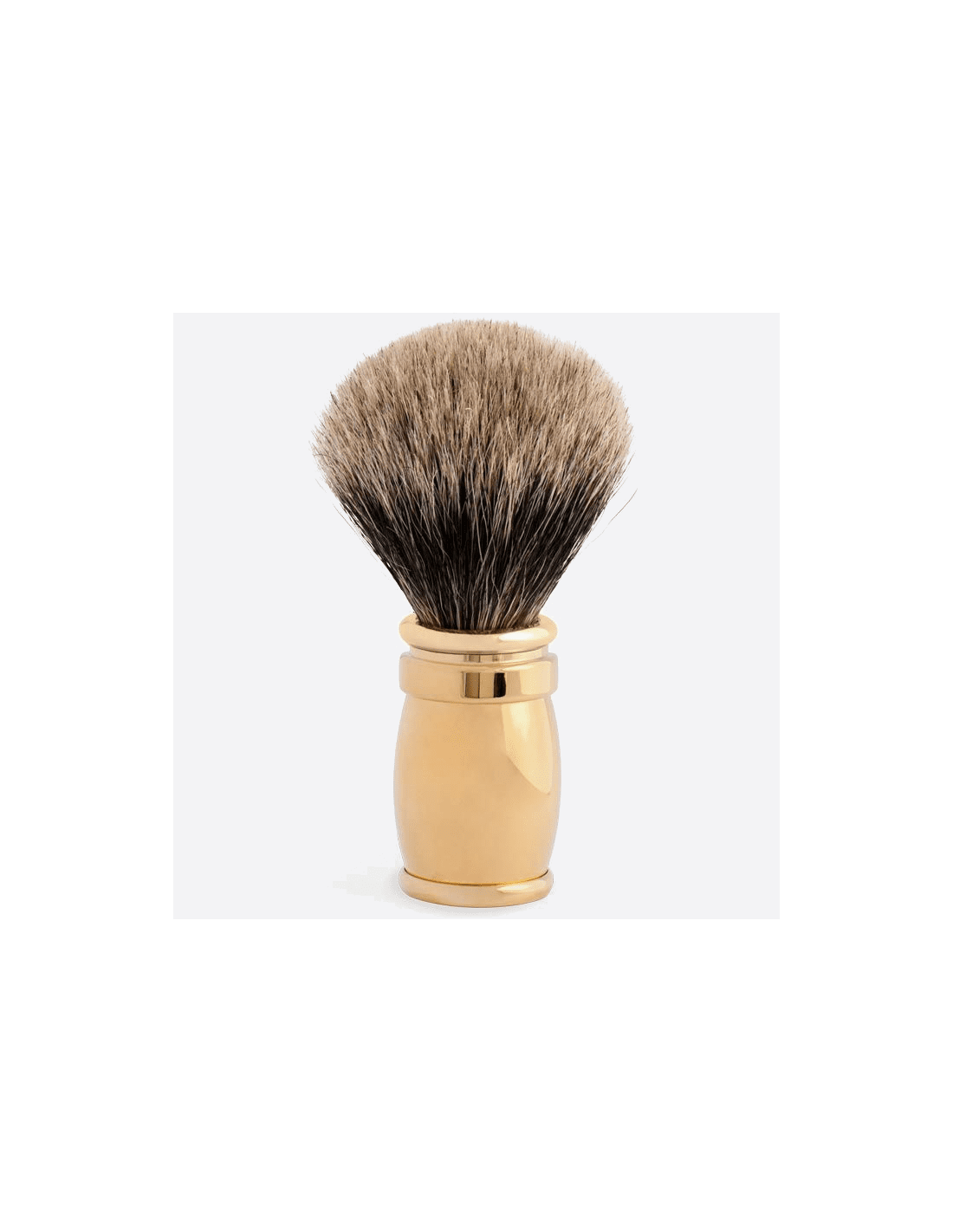 A remarkable shaving brush with a sober yet refined design. Made of solid brass, the handle has a polished/mirrored 24-carat gold finish. The tuft is removable thanks to screw mounting, and is available in three variants, depending on the hair quality used.