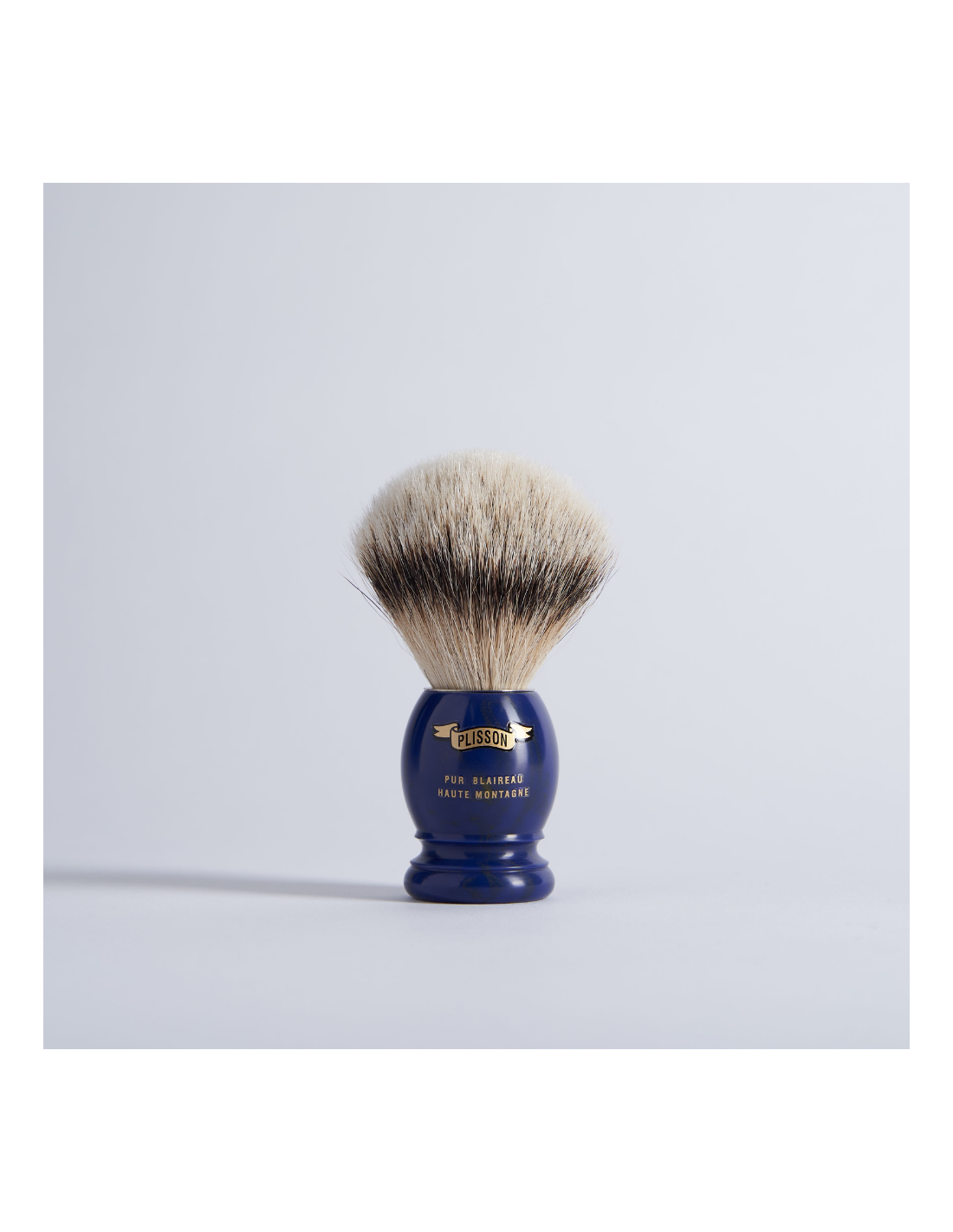 This splendid shaving brush is made of pure High Mountain White, the best and rarest quality of hair available in the world, and has a handle in Lazuli inspired resin, an intense royal blue colour. It is handcrafted in the Plisson workshops in France and is available in Size 12 (standard): the ideal size for everyday use.