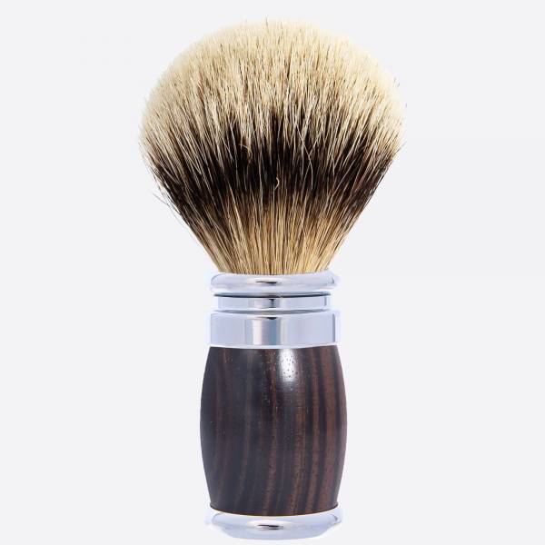 Traditional macassar ebony shaving brush with High Mountain White and chrome finish.