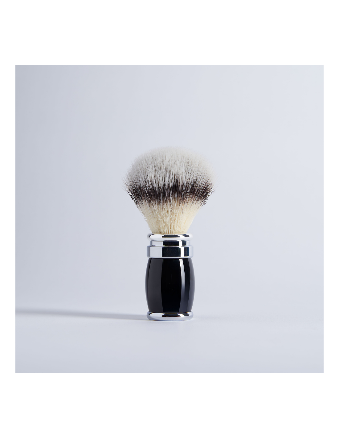• A shaving brush with synthetic fibres, featuring a black lacquered handle and filled with our "High Mountain White" fibre knot. Equipped with a removable size 12 (standard) knot, it is ideal for daily use. The "High Mountain White" fibre is a high-tech synthetic fibre designed to replicate the qualities of natural hair: particularly suited for sensitive skin, it offers remarkable softness and flexibility.