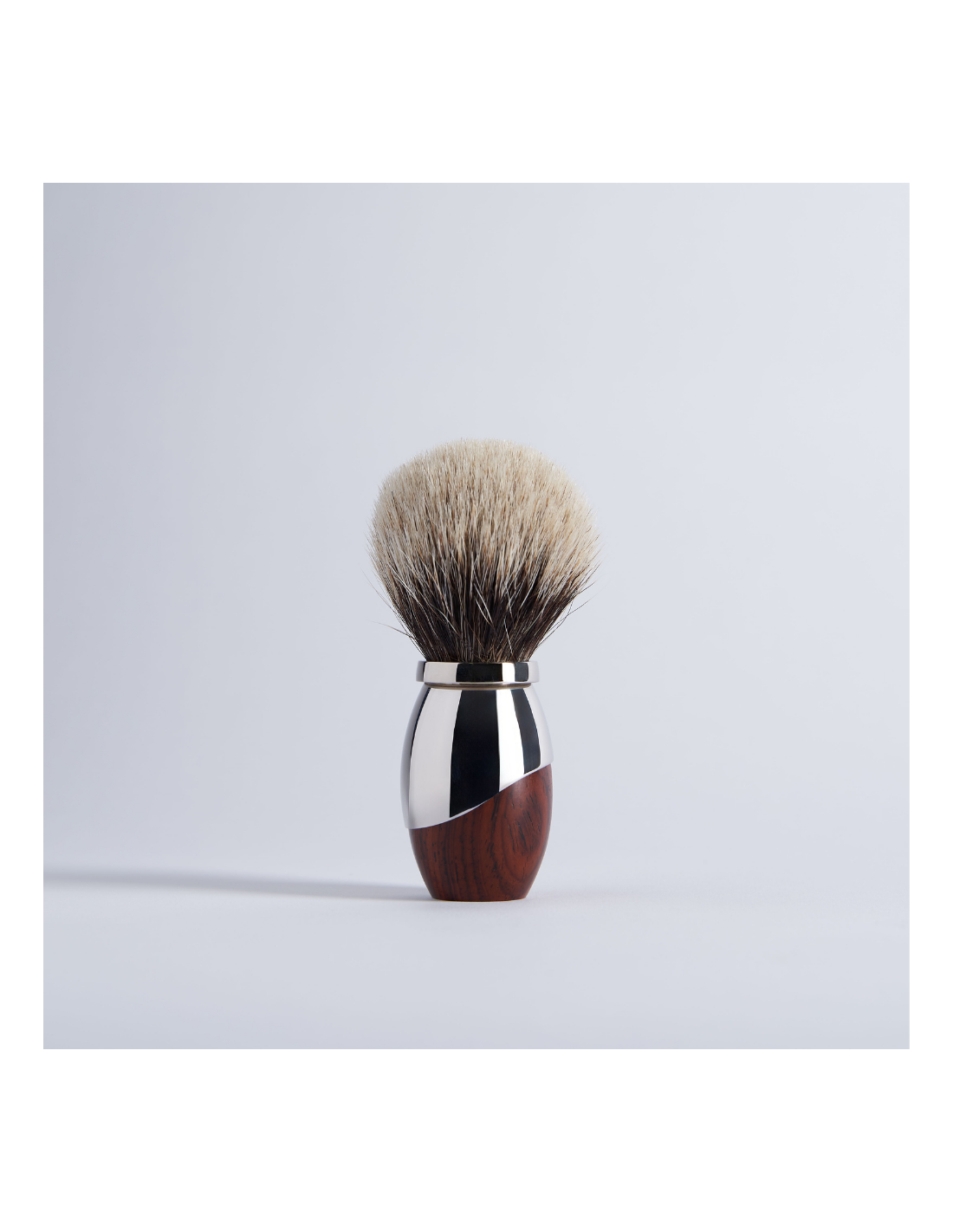Con brocha de puro tejón negro, gris o blanco europeo.