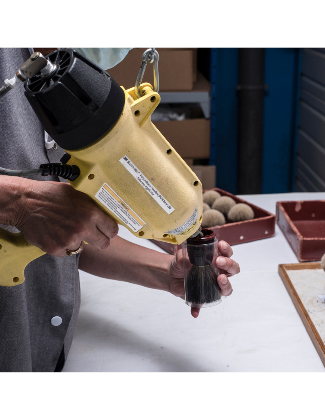 Para conservar las cualidades de su brocha de afeitar durante muchos años, recomendamos enjuagarla bien después de cada uso para eliminar cualquier resto de crema o jabón y escurrirla. Frótela ligeramente sobre una toalla de baño antes de guardarla, con la cabeza hacia abajo, en un soporte adecuado.