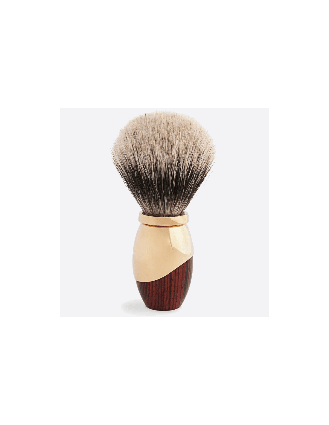 Con brocha de puro tejón negro, gris o blanco europeo.