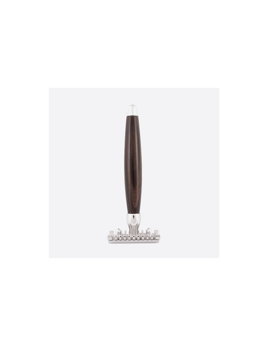 Elegante maquinilla de afeitar de precioso ébano barnizado y latón macizo con acabado Palladium. Gracias al material natural, cada modelo es diferente y único. El mango está bien equilibrado, lo que garantiza una gran precisión de los gestos durante el afeitado. Para satisfacer sus preferencias, esta hermosa maquinilla de afeitar está disponible con 3 cabezales diferentes: