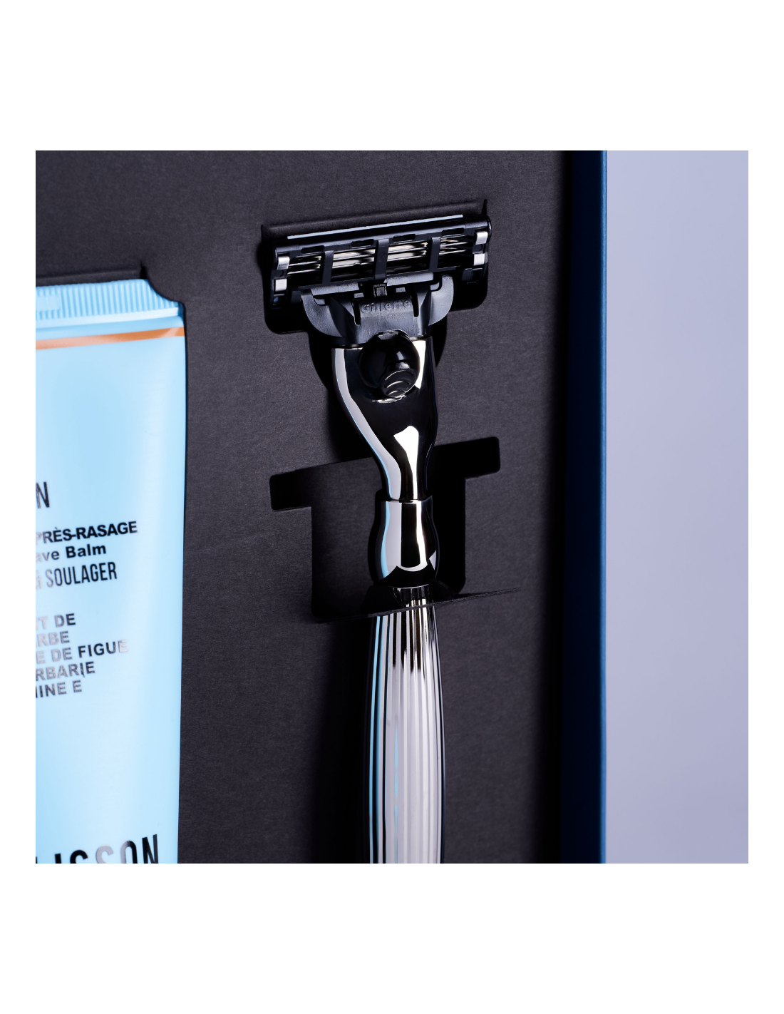 En este set de regalo Plisson, descubre el ritual de un afeitado perfecto: una crema de afeitar y un bálsamo after-shave, acompañados de una afeitadora Joris con acabado Godron.