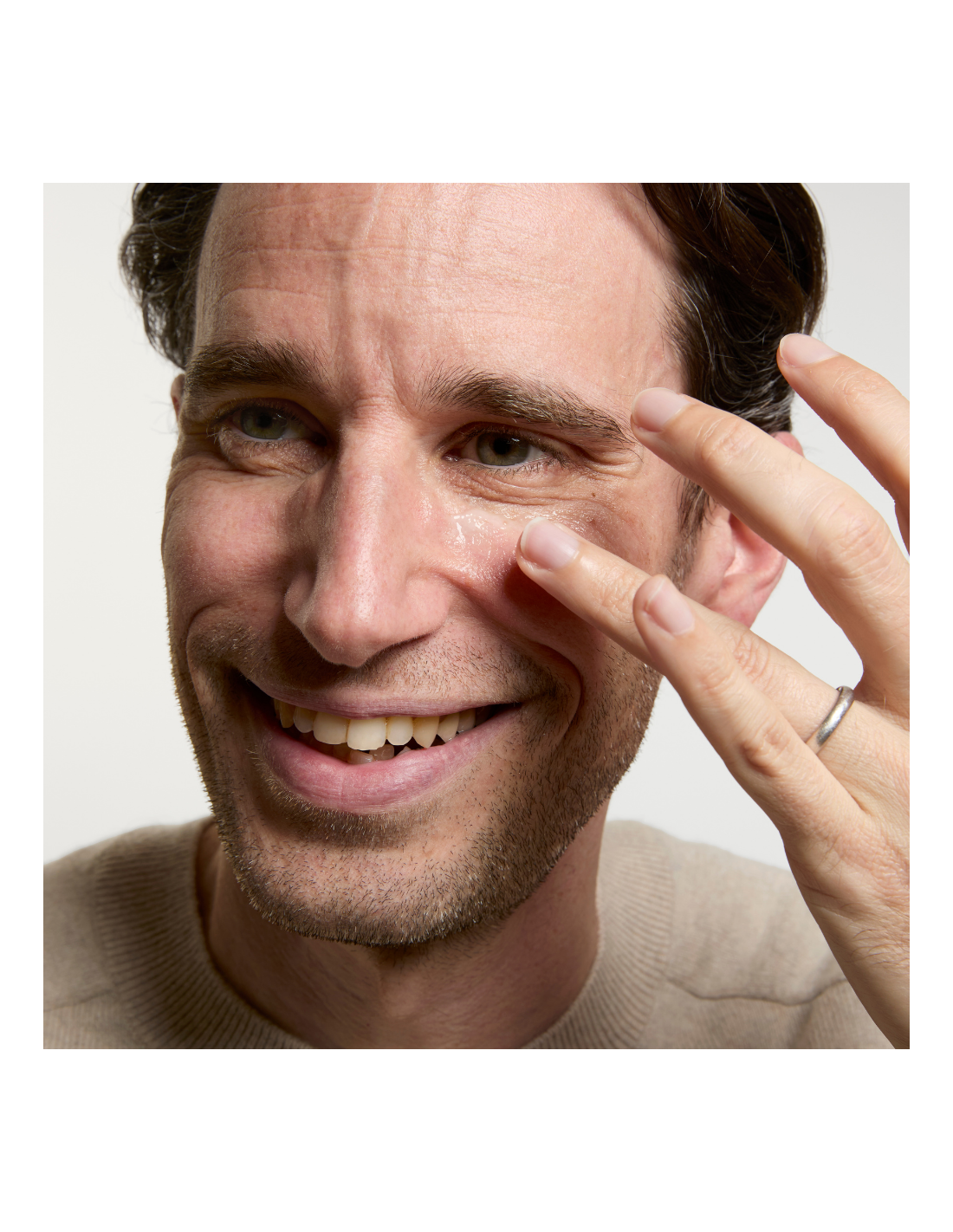 Aplicar una pequeña cantidad en las yemas de los dedos y dar suaves golpecitos en el contorno de los ojos, empezando por el rabillo del ojo y trabajando hacia fuera, evitando el párpado superior. Evitar el contacto directo con los ojos.