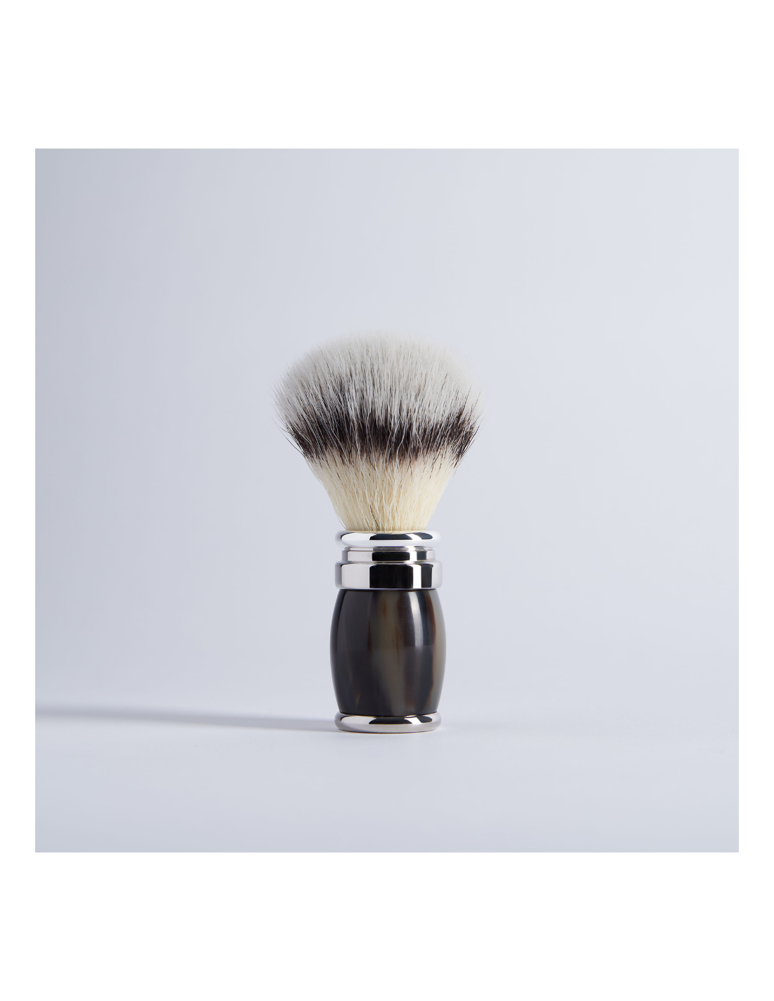 Este cepillo de afeitar tiene un mango de cuerno natural. La naturaleza variable del cuerno hace que cada pieza sea única e inimitable. Si a esto le añadimos un acabado en paladio, tenemos una pieza excepcional que combina singularidad y elegancia. Este cepillo de afeitar tiene un cabezal extraíble y un mechón de fibra "Blanco Alta Montaña". Esta fibra de alta tecnología es extremadamente suave y flexible. Es la fibra más adecuada para las pieles sensibles. Este modelo de brocha de afeitar es producido y ensamblado a mano en Francia por artesanos cualificados y le será entregado en su elegante embalaje.