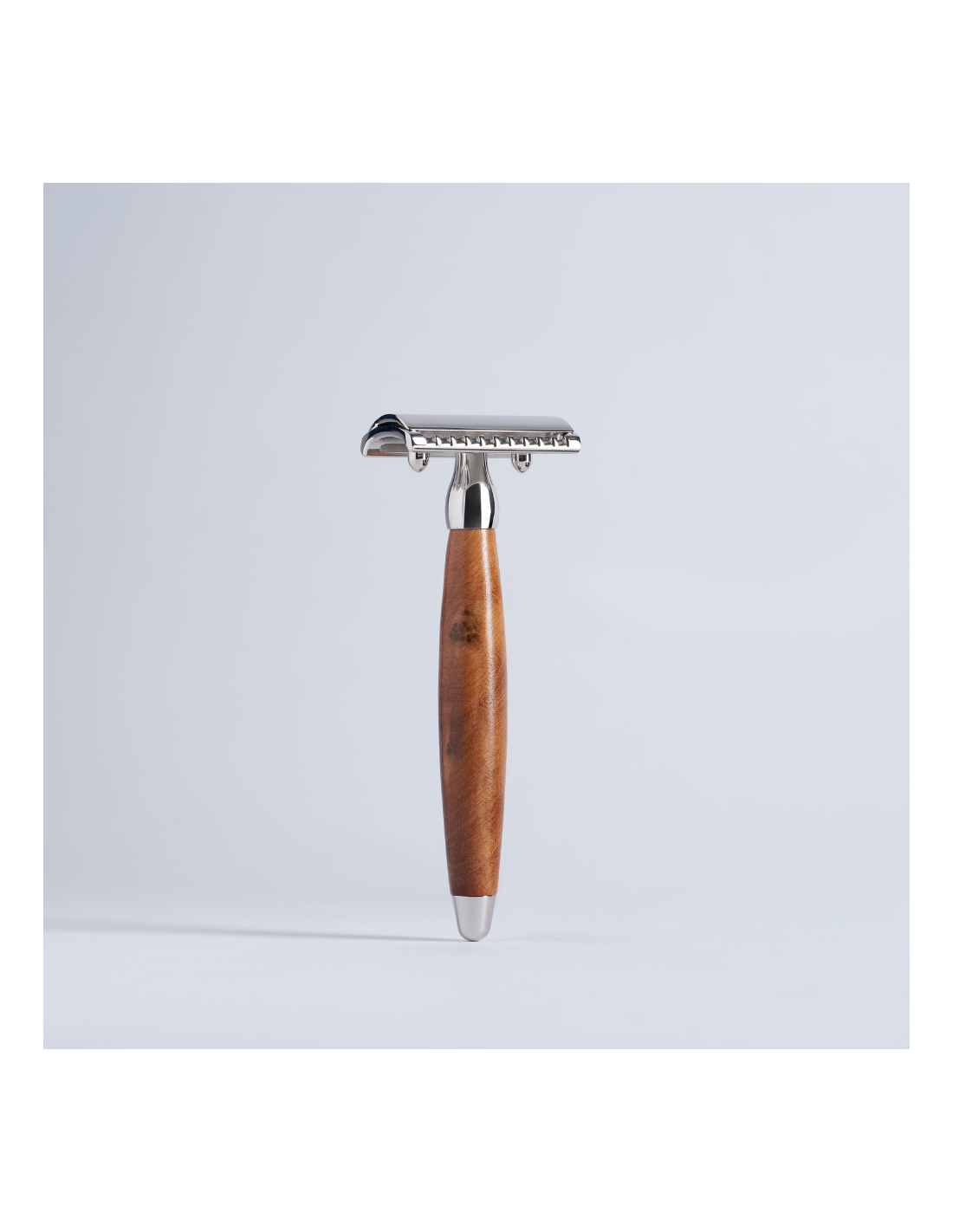 Maquinilla de afeitar Joris en madera de brezo y acabado cromado. Peine abierto o cerrado.