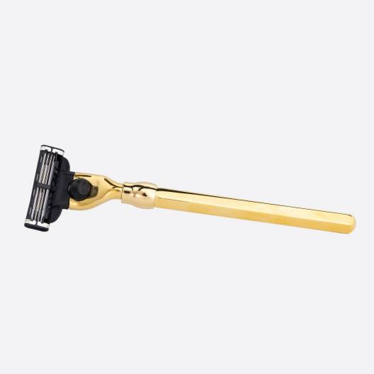 Esta parte relativamente pesada (latón macizo) está equipada con una cabeza de Gillette Mach3.