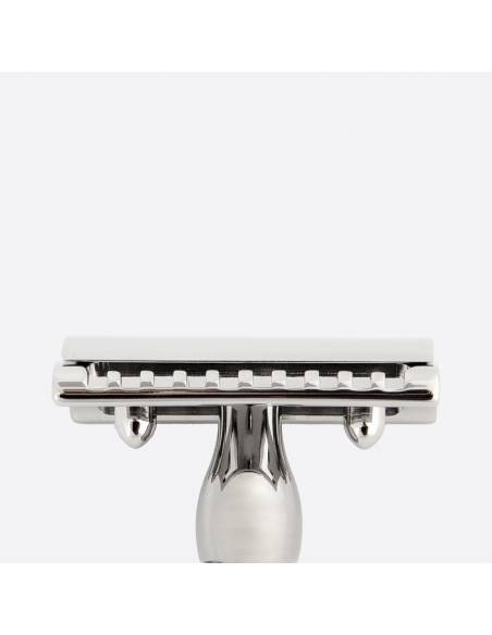 Maquinilla de afeitar hexagonal en latón macizo en acabado paladio, oro de 24 quilates o bicolor.