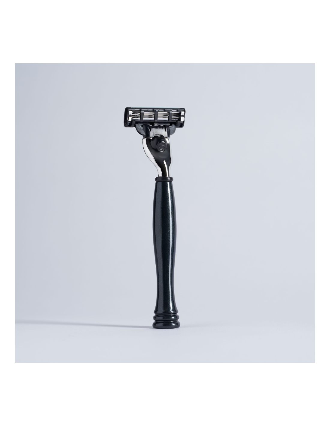 Rastrillo de excepción con mango tallado en bloque, que combina una elegancia contemporánea con un rendimiento impecable. Equipado con un cabezal Gillette Mach3 de 3 hojas para un afeitado preciso y seguro. Fabricación y ensamblaje en Francia.
