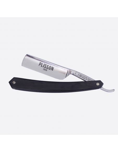 También llamada navaja de afeitar "sable", esta rasuradora tiene una hoja de acero al carbono C135. Hecha a mano en colaboración con los talleres de Thiers-Issard en Francia. El mango está hecho de ébano real, una madera preciosa conocida por su color oscuro. La hoja es delgada y hueca, para un afeitado perfecto y suave. La muesca antideslizante en la parte inferior de la espiga le garantiza más seguridad. La maquinilla de afeitar se entrega en un elegante estuche de ante color coñac.