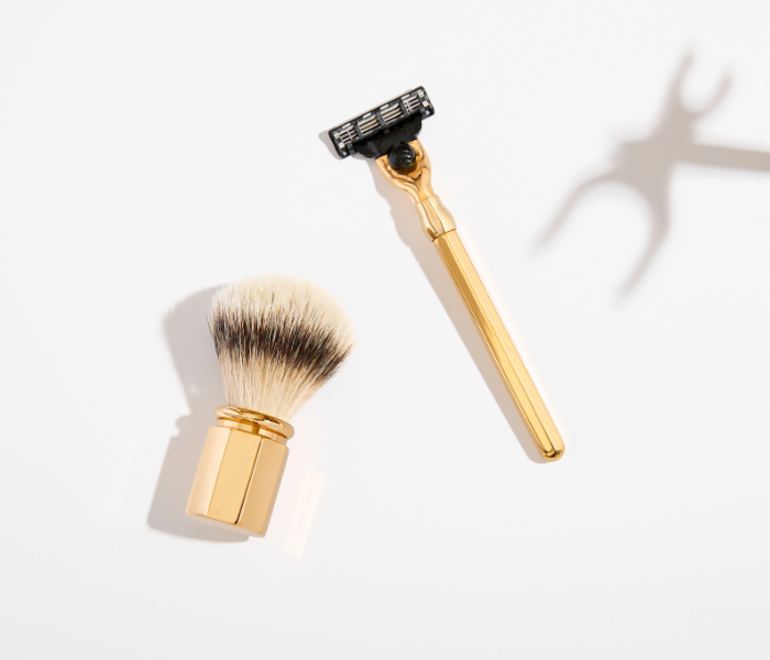 Brocha de afeitar recta con adornos de Oro