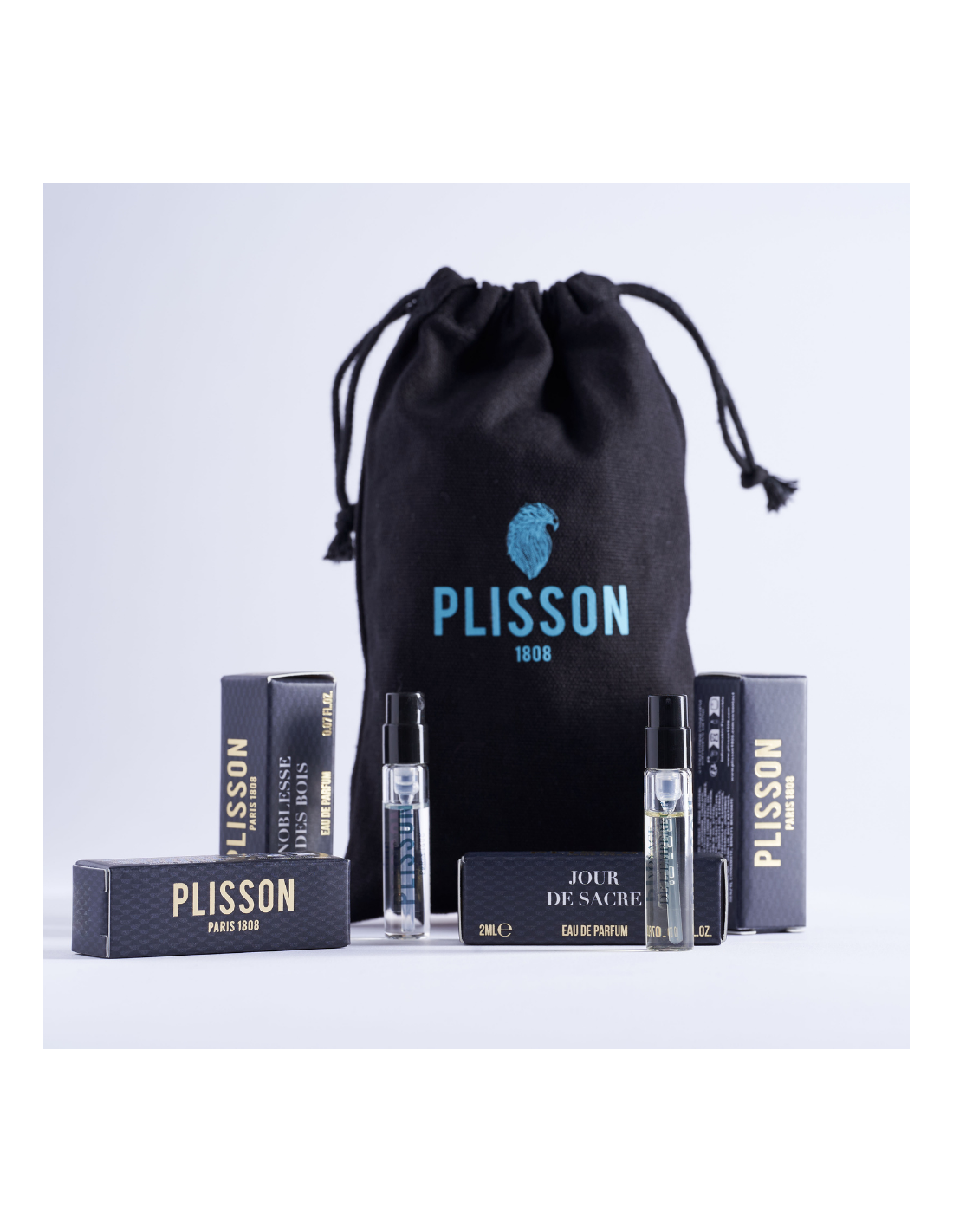 Descubra los seis perfumes de la Colección 1808, presentados en formato de 2 mL. Cuidadosamente reunidos en una bolsita Plisson, para una experiencia refinada.