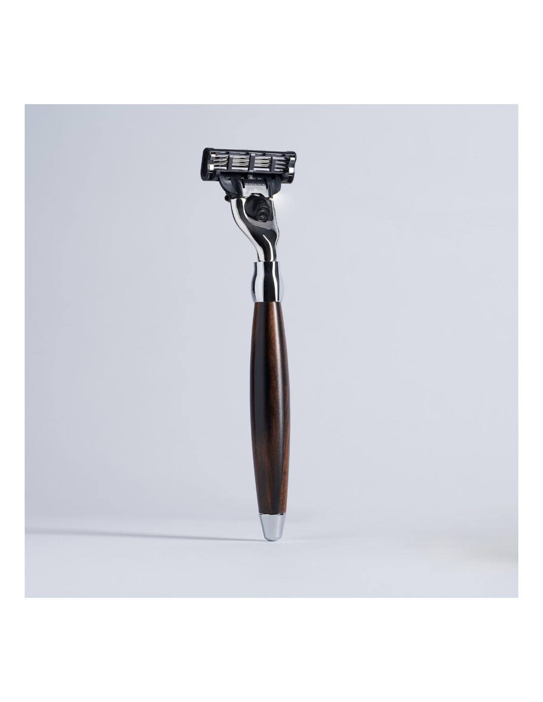 Magnífico rastrillo de madera de ébano de Macasar. Equipado con el cabezal Mach3 de Gillette, cómodo y muy eficaz.