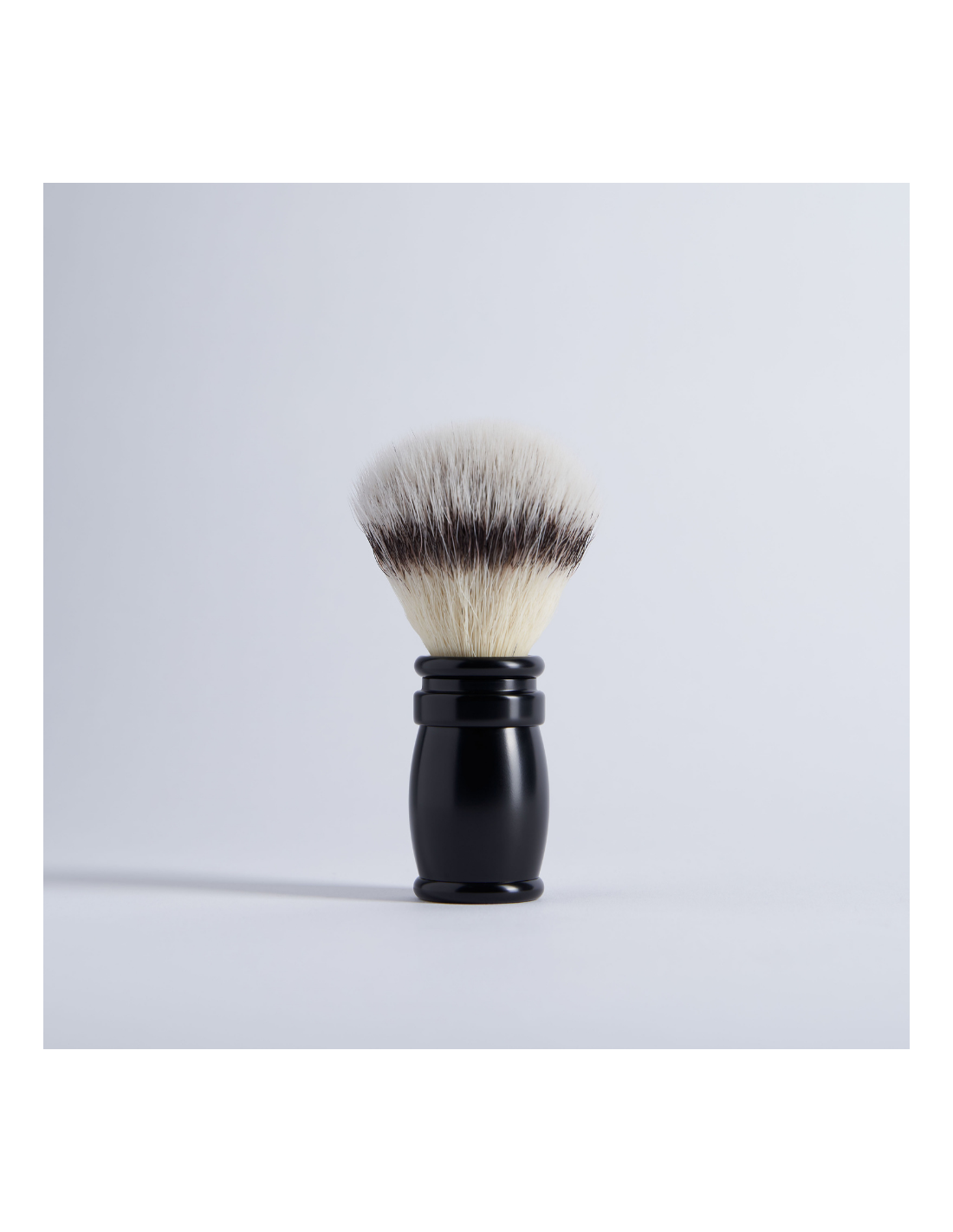 • Un blaireau de rasage en fibre Blanc Haute Montagne et en laiton massif avec une finition noir infini. Ce blaireau est garni d’une touffe dévissable taille 12, standard, idéale pour le rasage quotidien.