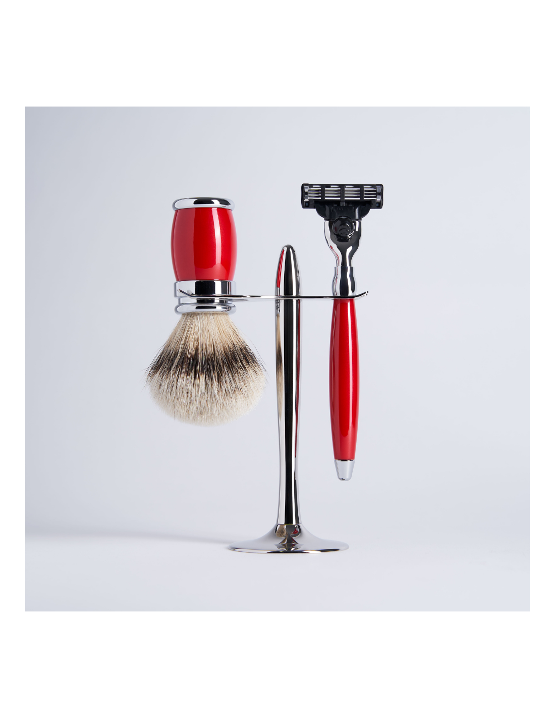 Coffret 3 pièces laqué rouge Mach3 Blanc Haute Montagne finition chrome