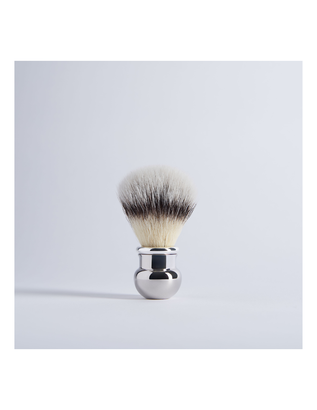 Ce somptueux blaireau en laiton massif et en finition palladium allie simplicité et efficacité. Son poids et sa forme emblématique en font un accessoire de rasage précis, élégant et ergonomique. Garni avec une fibre synthétique “Blanc Haute Montagne”, ce blaireau est d’une douceur et souplesse incroyable.