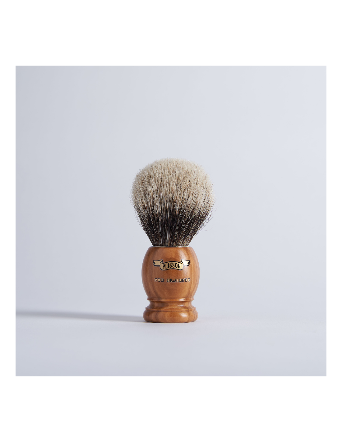Blaireau en bois d’olivier verni, garni de pur blaireau gris européen. Existe en petite (8,10) et moyenne (12 et 14) taille. Fabrication française.