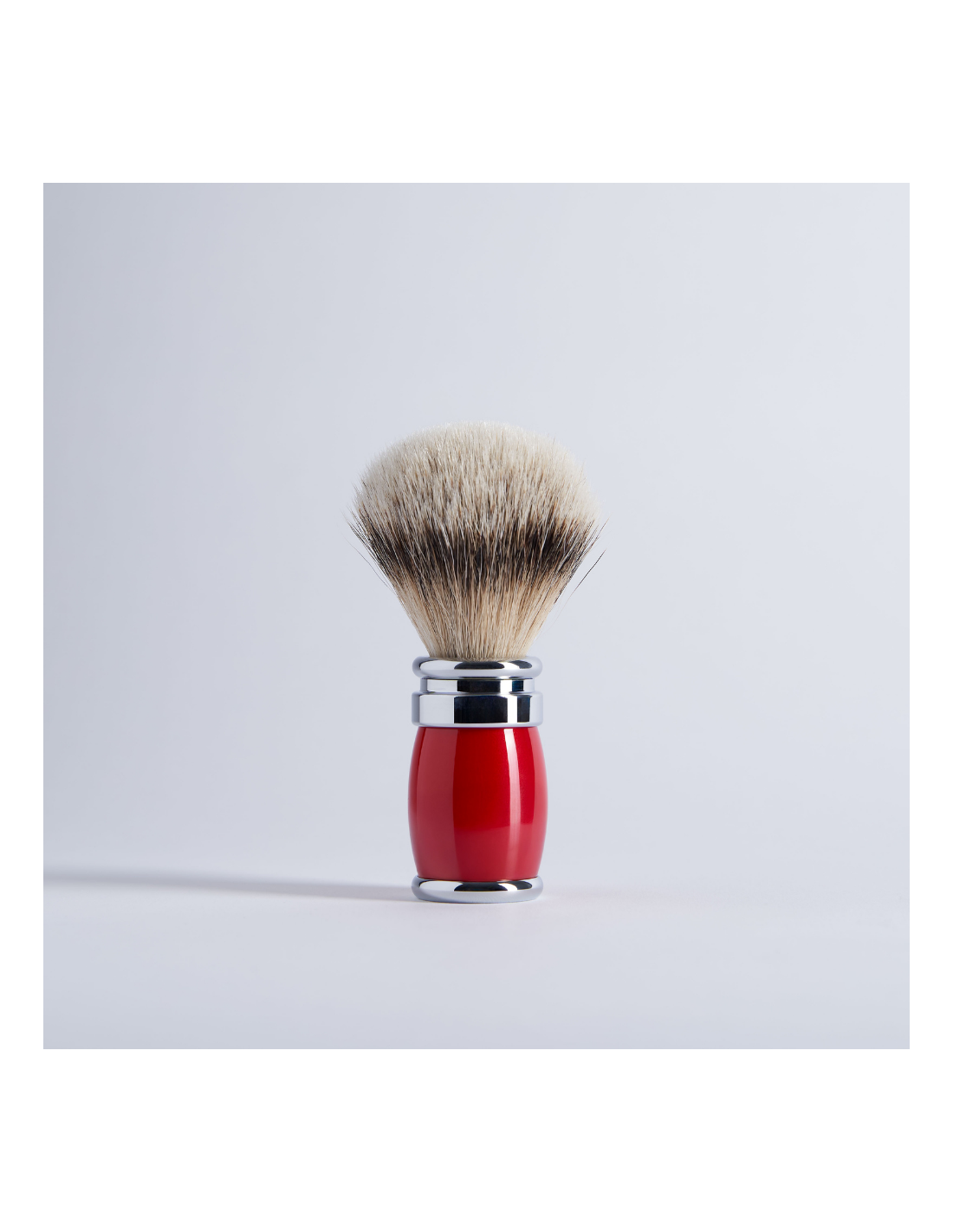 Élégant blaireau de la collection Joris, manche laqué et finition laiton chromé. Cette magnifique pièce est doté d’une tête amovible taille 12 garni de la touffe Blanc de Haute Montagne. Fabrication 100% Française. Ce modèle est disponible en 3 coloris : blanc, noir et rouge.