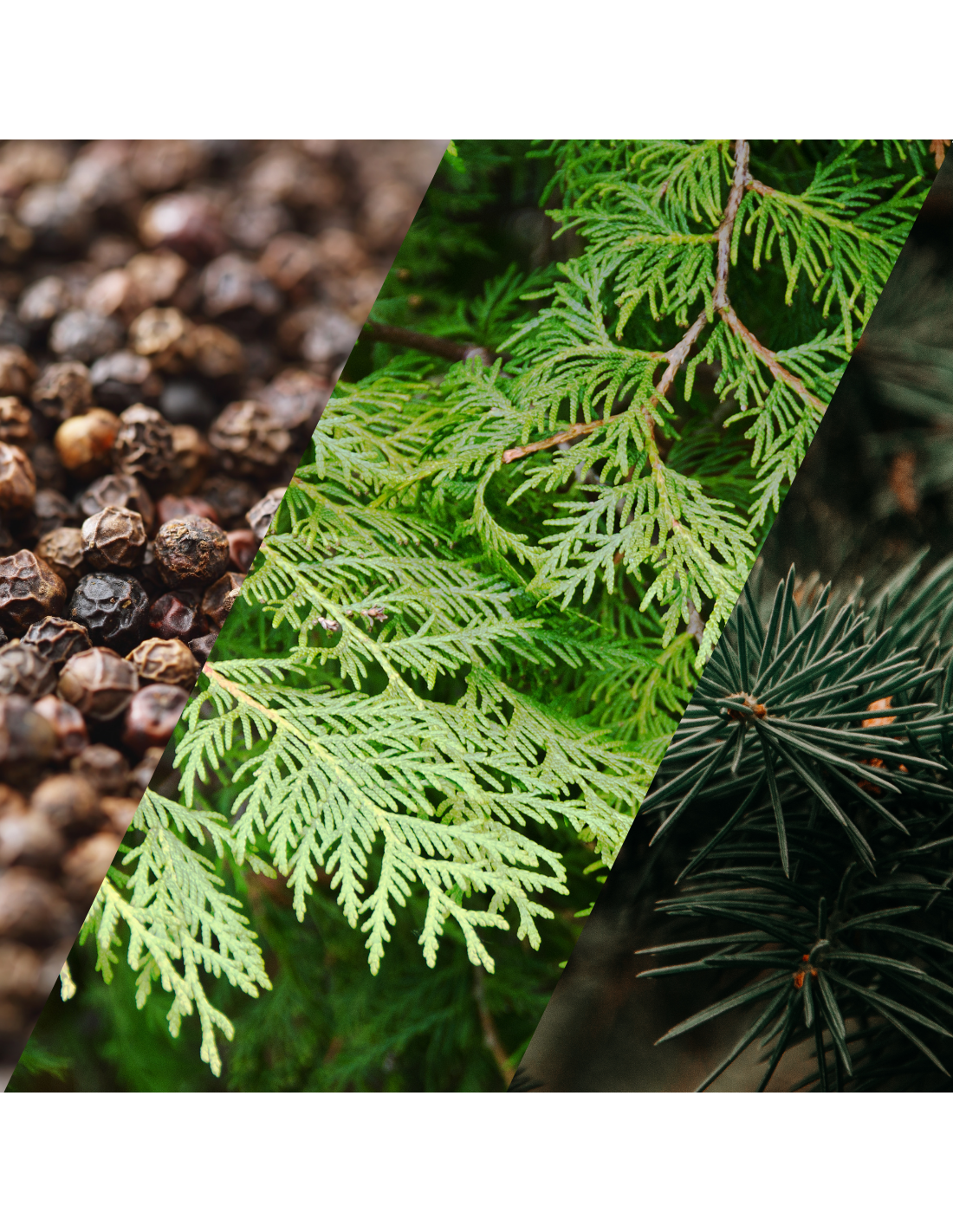 Notes de tête : Aiguilles de sapin - Aiguilles de pin - Poivre noir