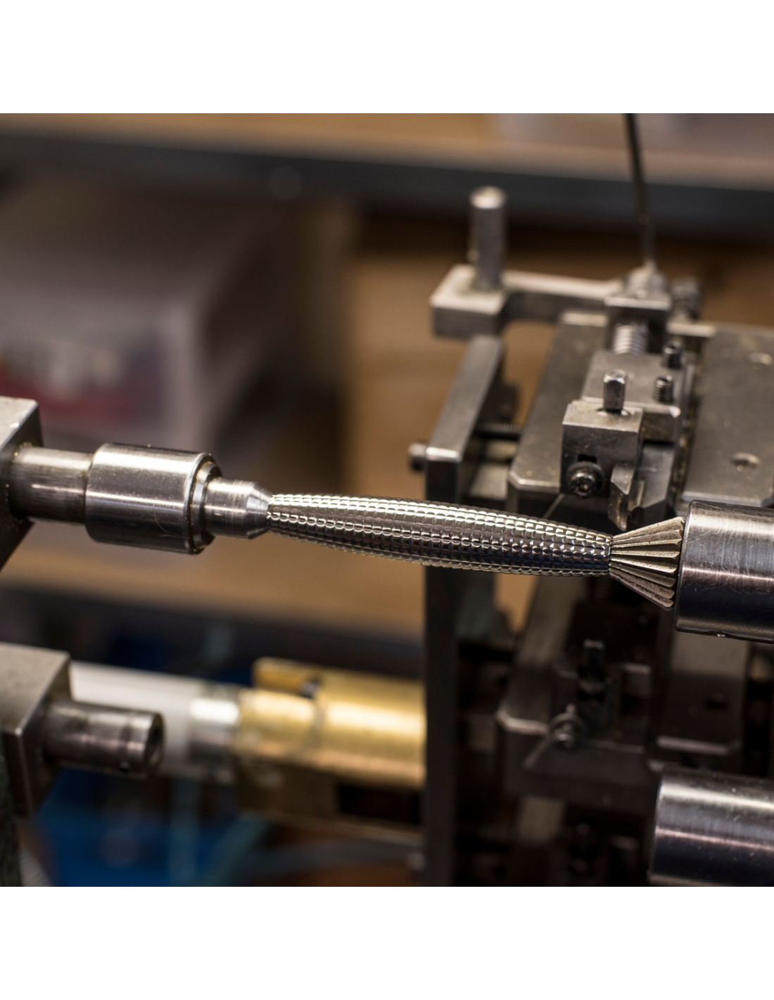 Rasoir de sûreté avec finition palladium sur laiton massif. Décor motif Diamant. Compatible avec les lames standards.