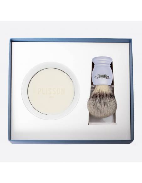 Ce modèle est proposé en taille 12, standard, bien adaptée à un usage quotidien avec son support adapté en plexi-cristal pour un rangement « Tête en bas », indispensable pour un bon séchage, et un bol en porcelaine de Limoges avec son savon à barbe.