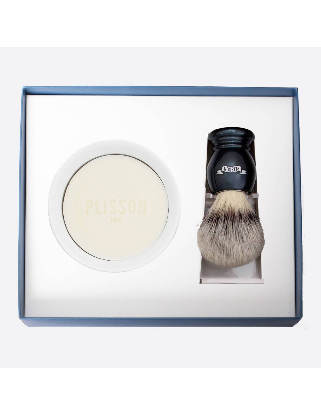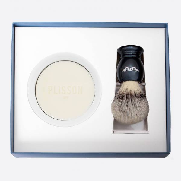 Ce modèle est proposé en taille 12, standard, bien adaptée à un usage quotidien avec son support adapté en plexi-cristal pour un rangement « Tête en bas », indispensable pour un bon séchage, et un bol en porcelaine de Limoges avec son savon à barbe.