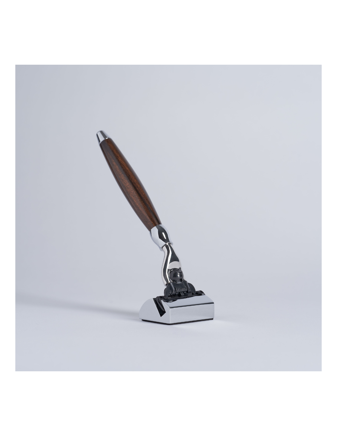 Très beau design pour ce support de rasoir en laiton massif chromé. Il est idéalement conçu pour stocker votre rasoir dans une position facilitant le séchage et préservant la lame. Compatible avec tous les rasoirs Mach3 et Fusion.