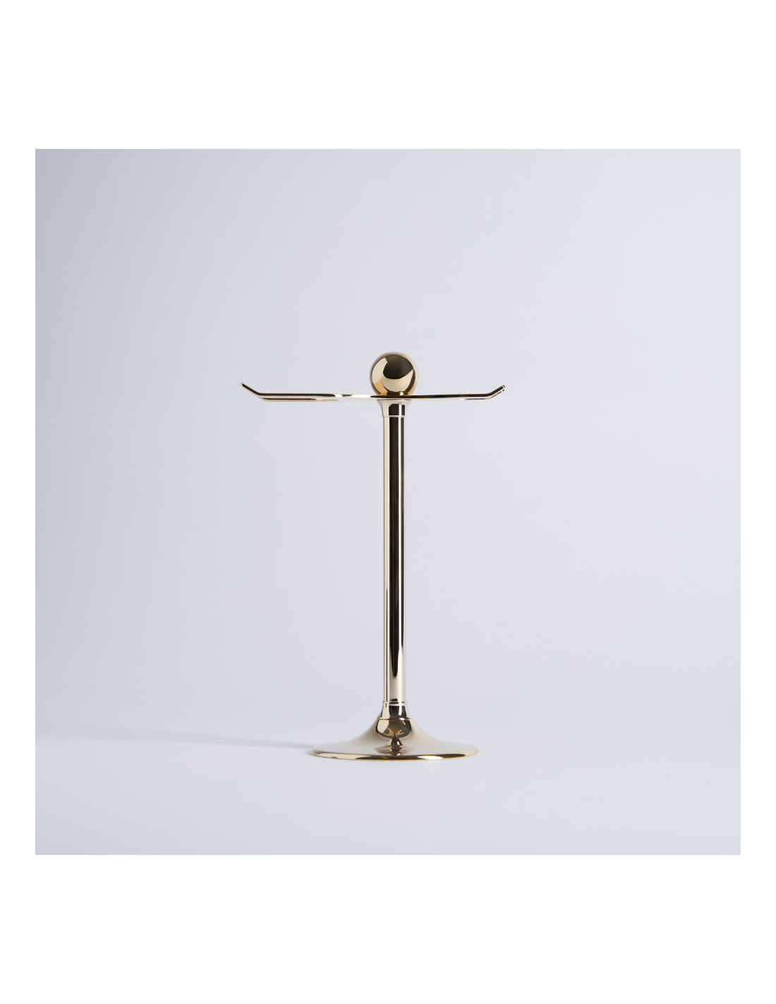Magnifique serviteur en laiton massif et finition Or 24 carats de la collection Boule, accueillant avec élégance vos accessoires de rasage.